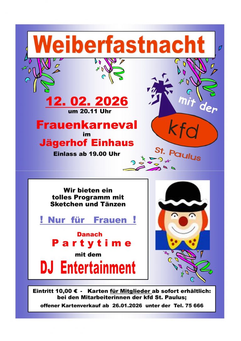 Eintrittskarten zum Preis von 10,-€ sind im Onlineshop der Vereinten Volksbank erhältlich, sowie in den Pfarrbüros der Gemeinde St. Paulus und in der Bäckerei Imping (An der Molkerei). Auch eine Abendkasse wird es geben.